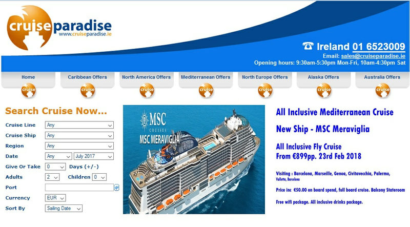 Cruise Paradise is Ireland's Leading Travel Agent offering cheap cruises in the Mediterranean - Caribbean Cruises, and more. Browse cruise holidays online now.